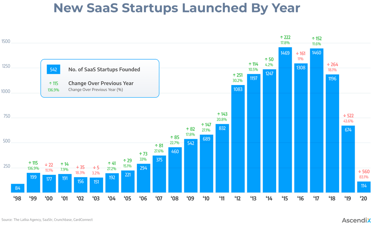 SaaS 市场从 2015 年的 314 亿美元增长到 2024 年的 2,500 亿美元以上,仅美国就有超过 16,500 家 SaaS 公司。但每个垂直领域最终收敛到 2-3 家赢家——又一次幂律分布,和印刷术之后的供给爆炸遵循着同样的规律。价值从"有服务器"迁移到"有用户",再到"有数据飞轮"和"有网络效应"。